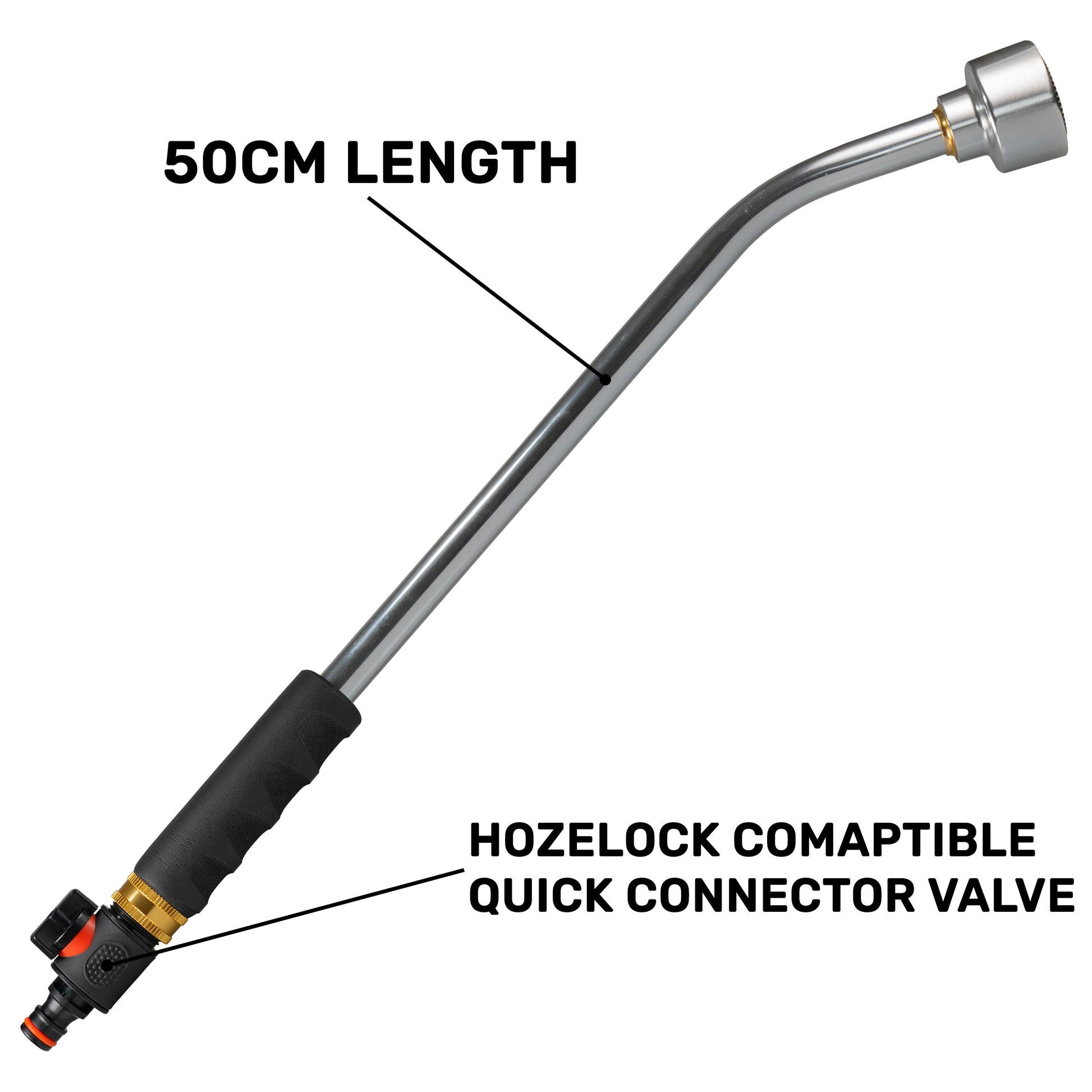 50cm Garden Watering Lance with Quick Connect Valve (Black)