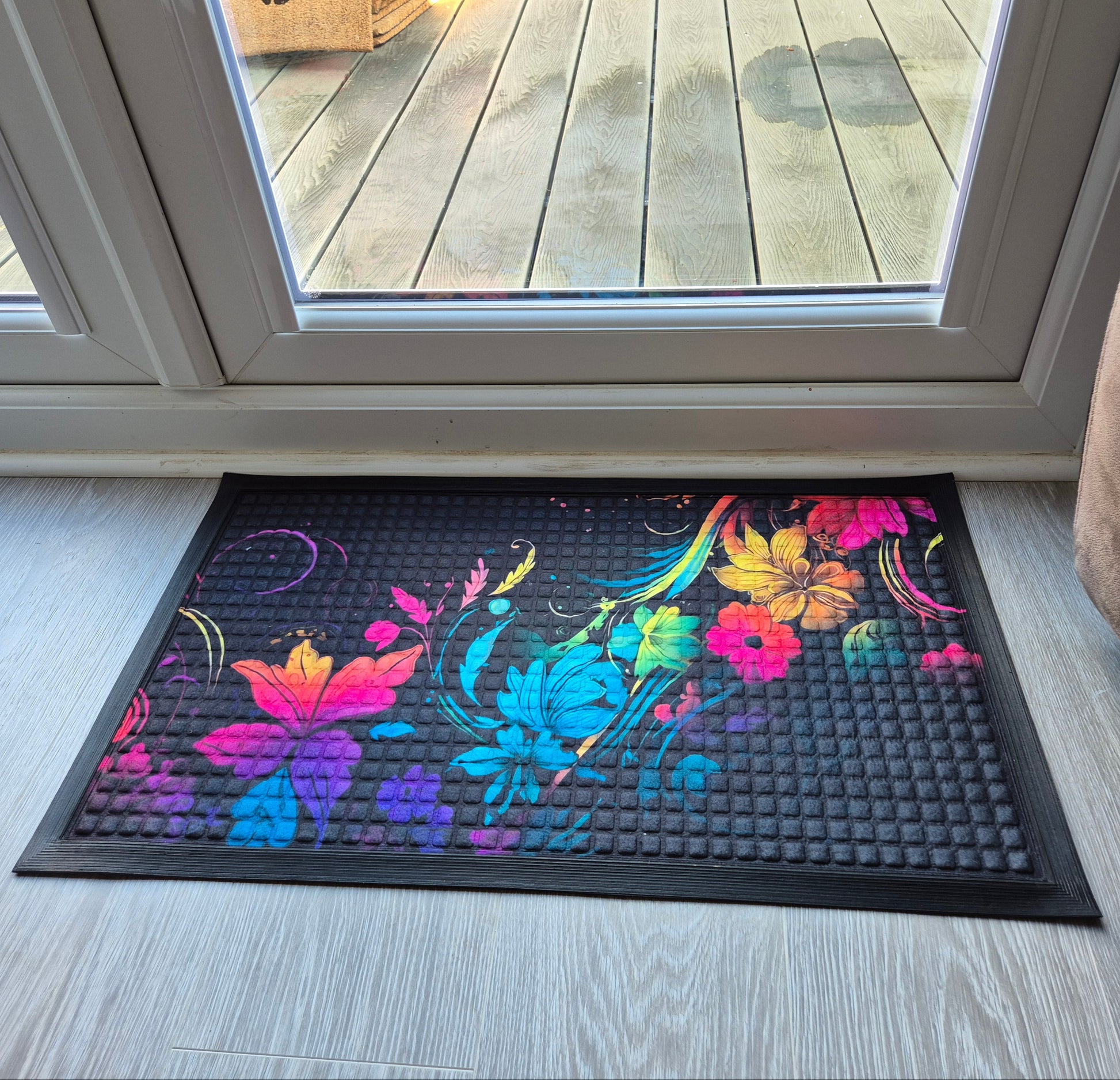 Bright Flower Print Embossed Textured Door Mat (45cm x 75cm)