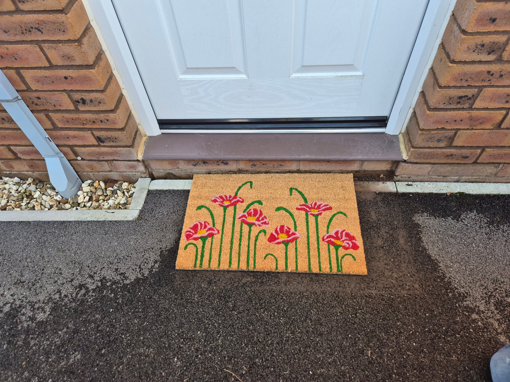 Flower Print Coir Fibre Doormat with Rubber Backing (60cm x 40cm)