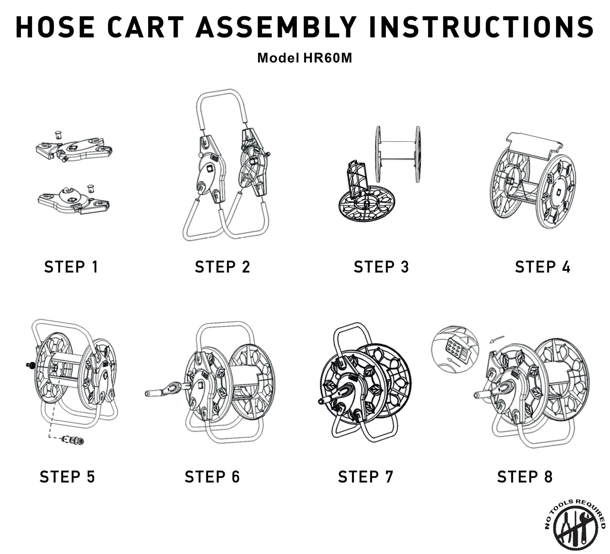 Please note, this product does not come pre-assembled. No tools are required for assembly and user-friendly instructions are provided in the box to assist in building the hose reel.