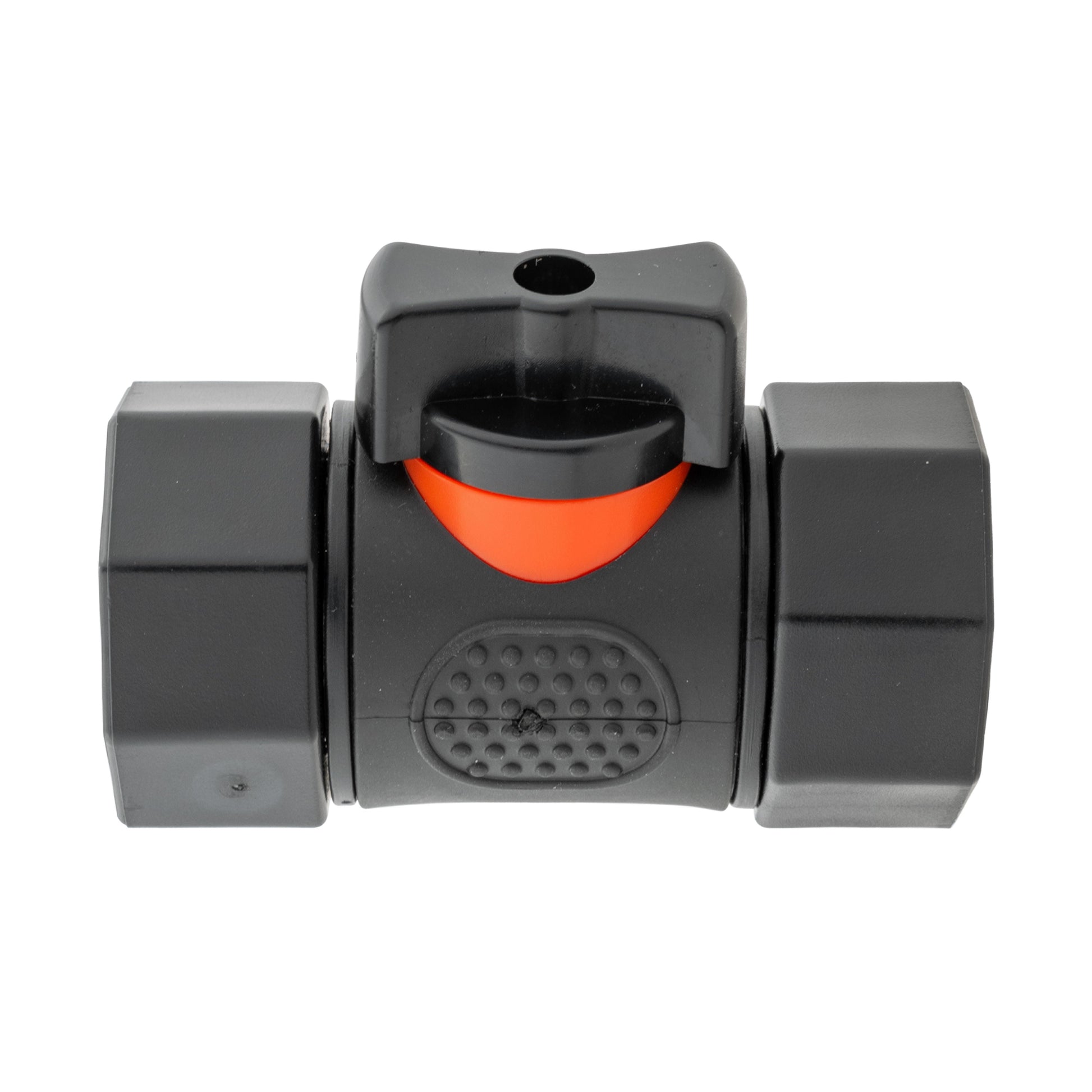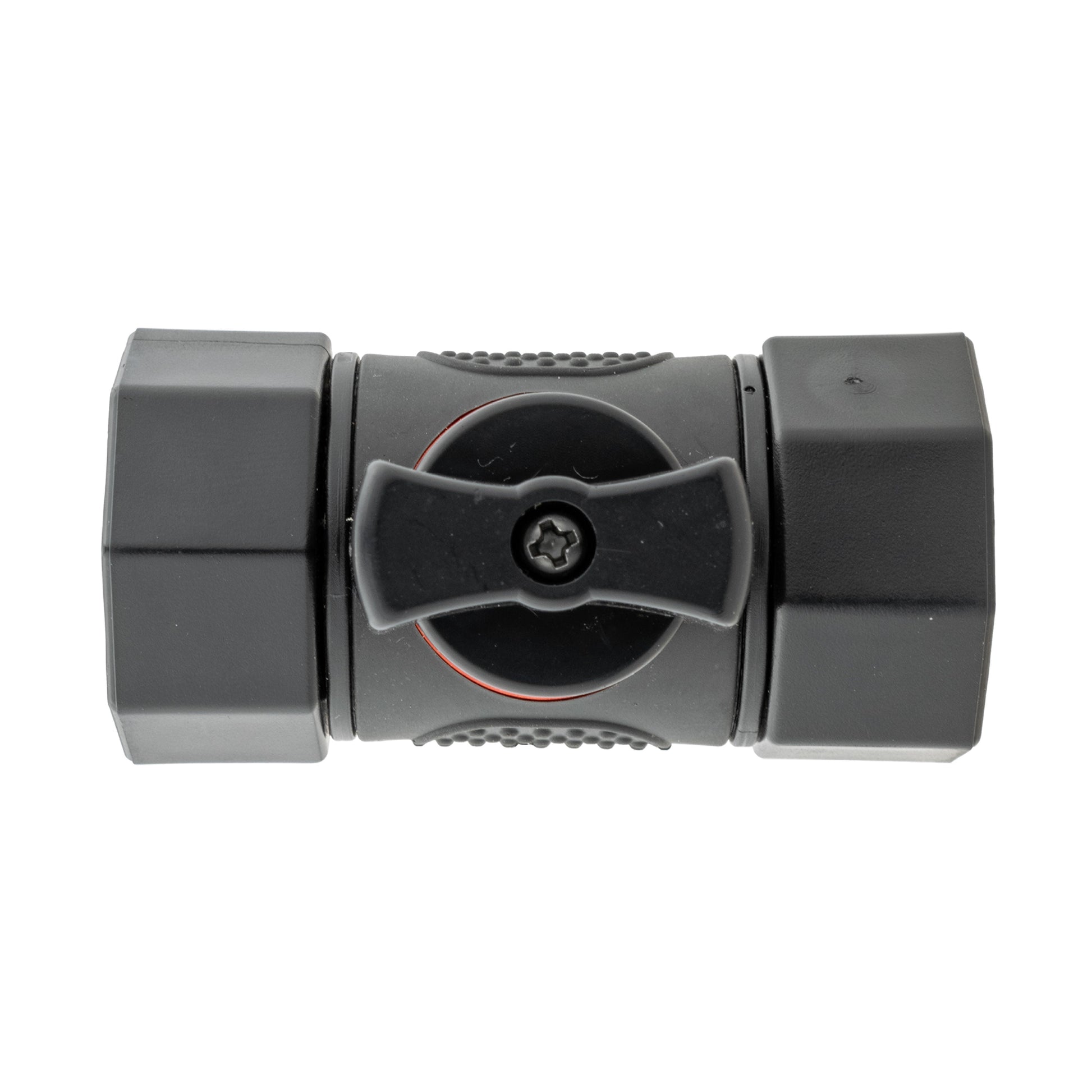 The In Line Soft Touch Valve is a durable, ergonomic plastic valve with BSP Female threads on both ends, designed for precise fluid control in various applications. Its smooth turn on/off mechanism and swivel design offer easy, comfortable operation and adaptability without disconnection. Resistant to wear and corrosion, this sleek black valve delivers reliable, user-friendly performance.